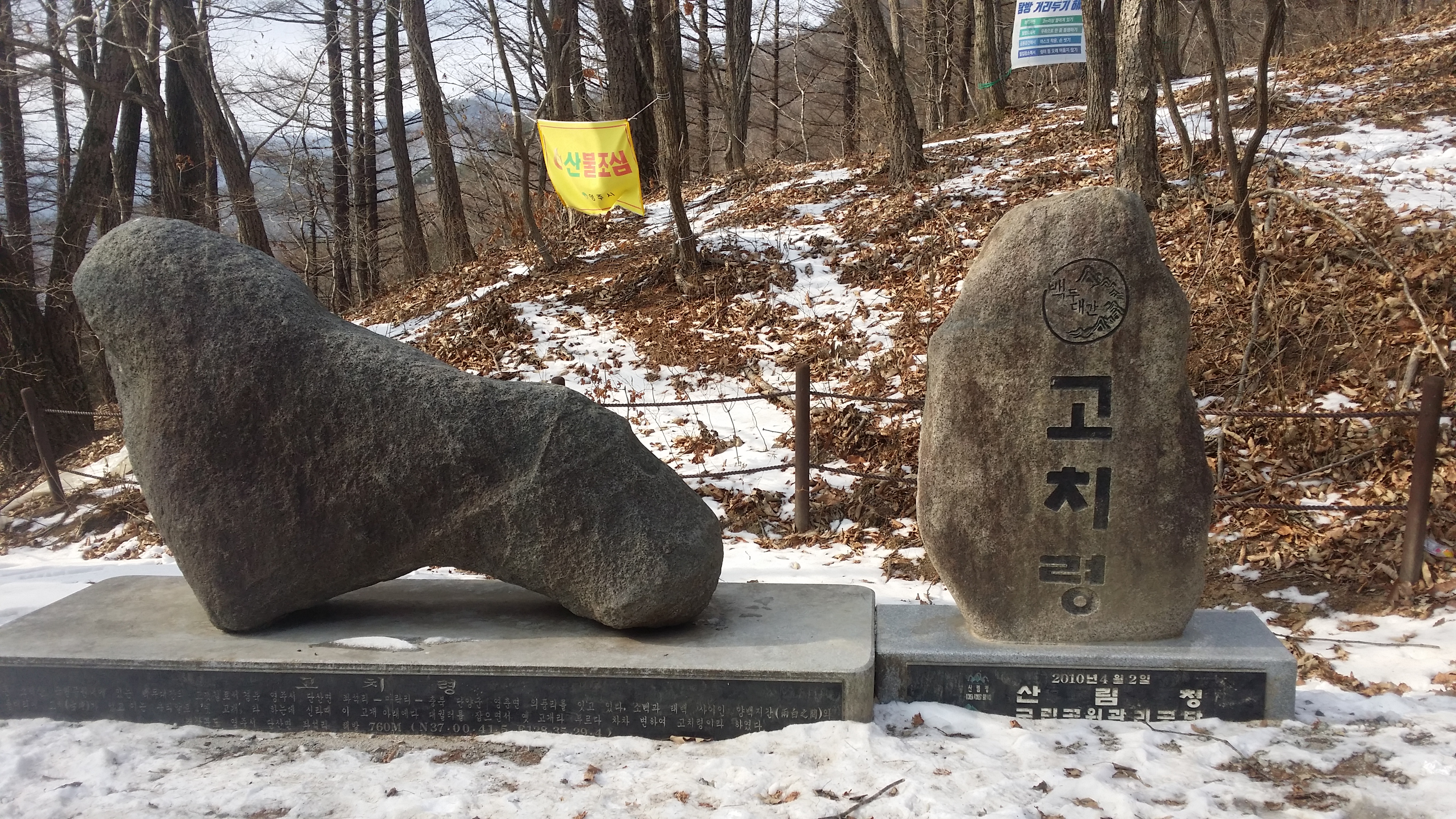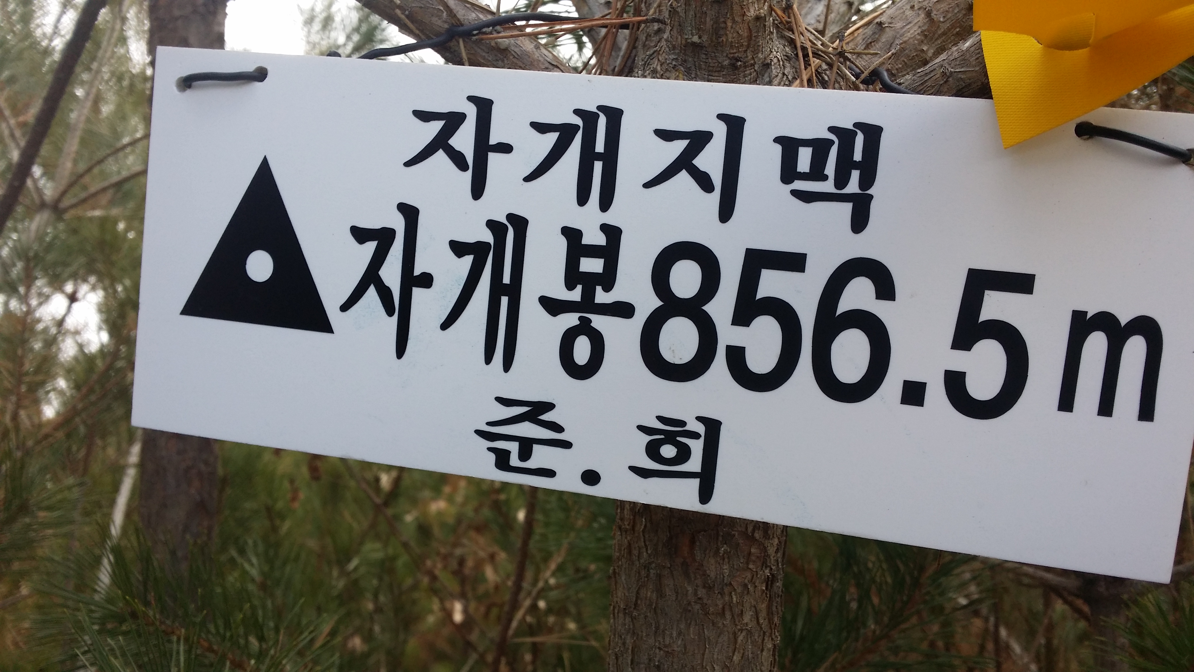 12:04 고치령올해 첫눈을 밟으며 산행을 시작한다12:11 814.9봉12:26 자개지맥 분기점12:30 956.2봉 12:35 928.2봉12:52 855.7봉13:11 자개봉(△/856.5m) / 눈으로 인하여 삼각점을 찾을수가 없다