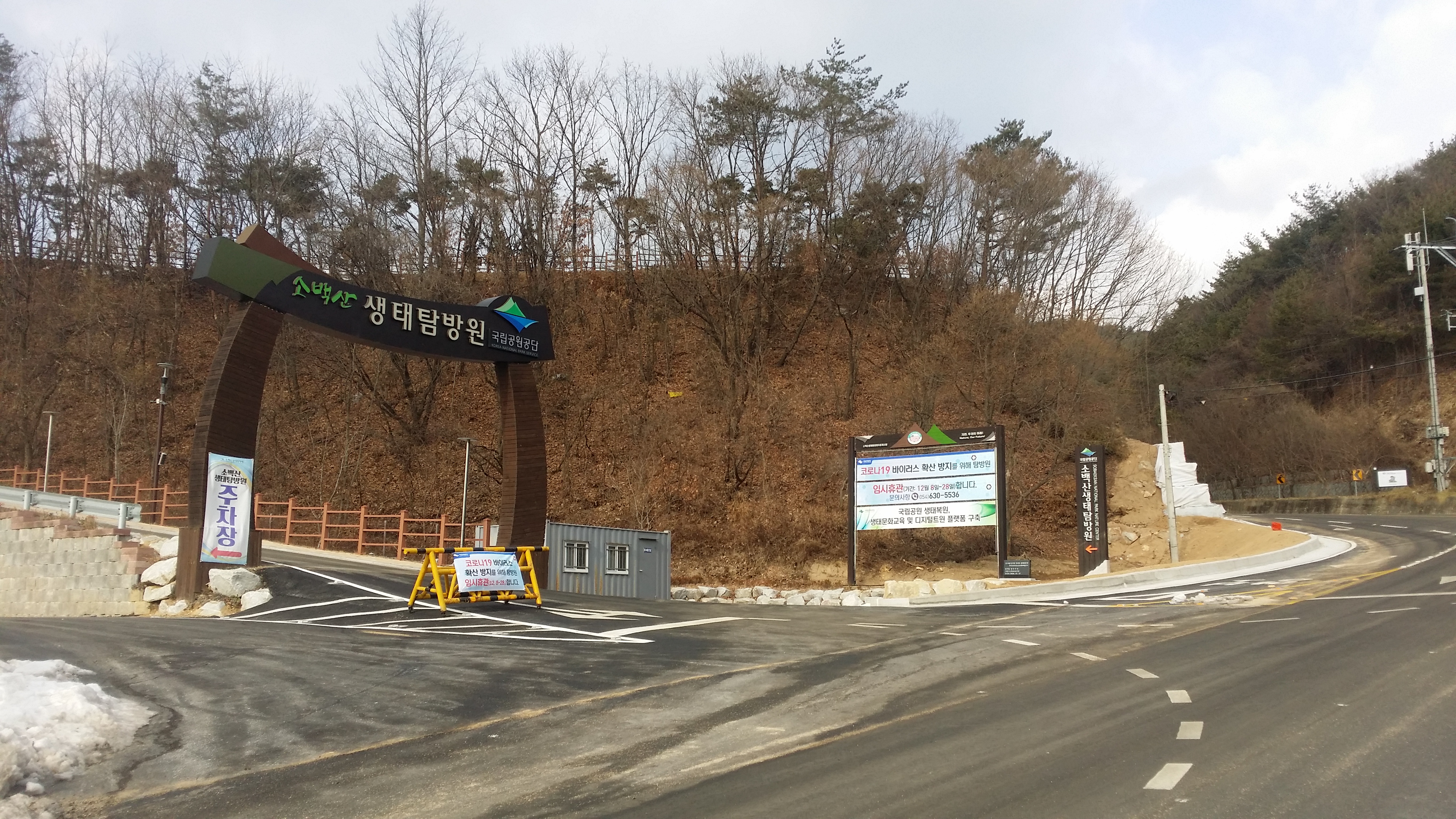 10:40 소백산 생태 탐방원 / 코로나19 확산으로 인하여 임시휴관중이고 국립공원 탐방로 또한 임시 폐쇄중인데, 혹 고치령에서 통제하는건 아닐지 걱정이 된다. 산불 감시 차량이 지나가니 마음이 더 심란하다