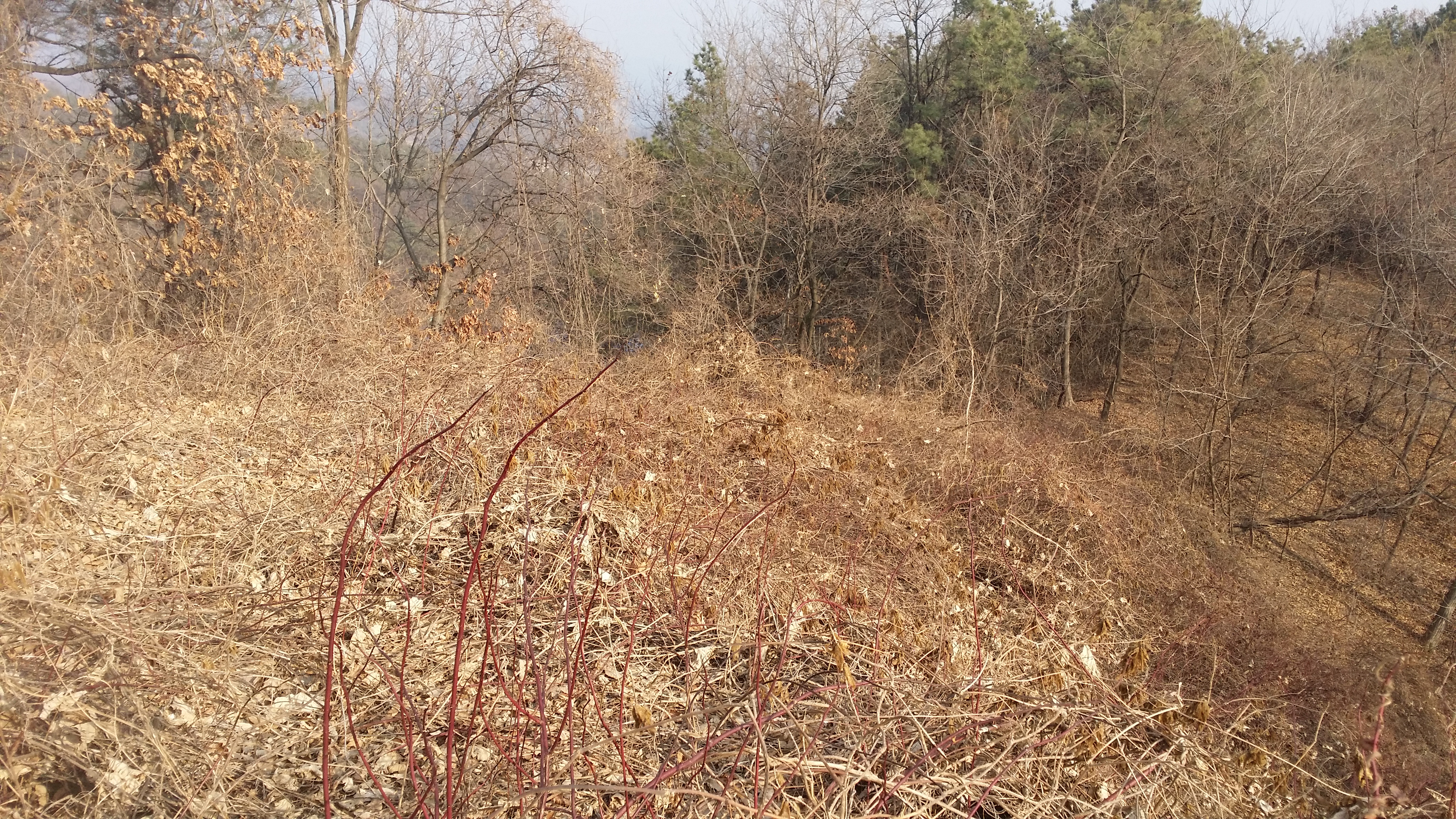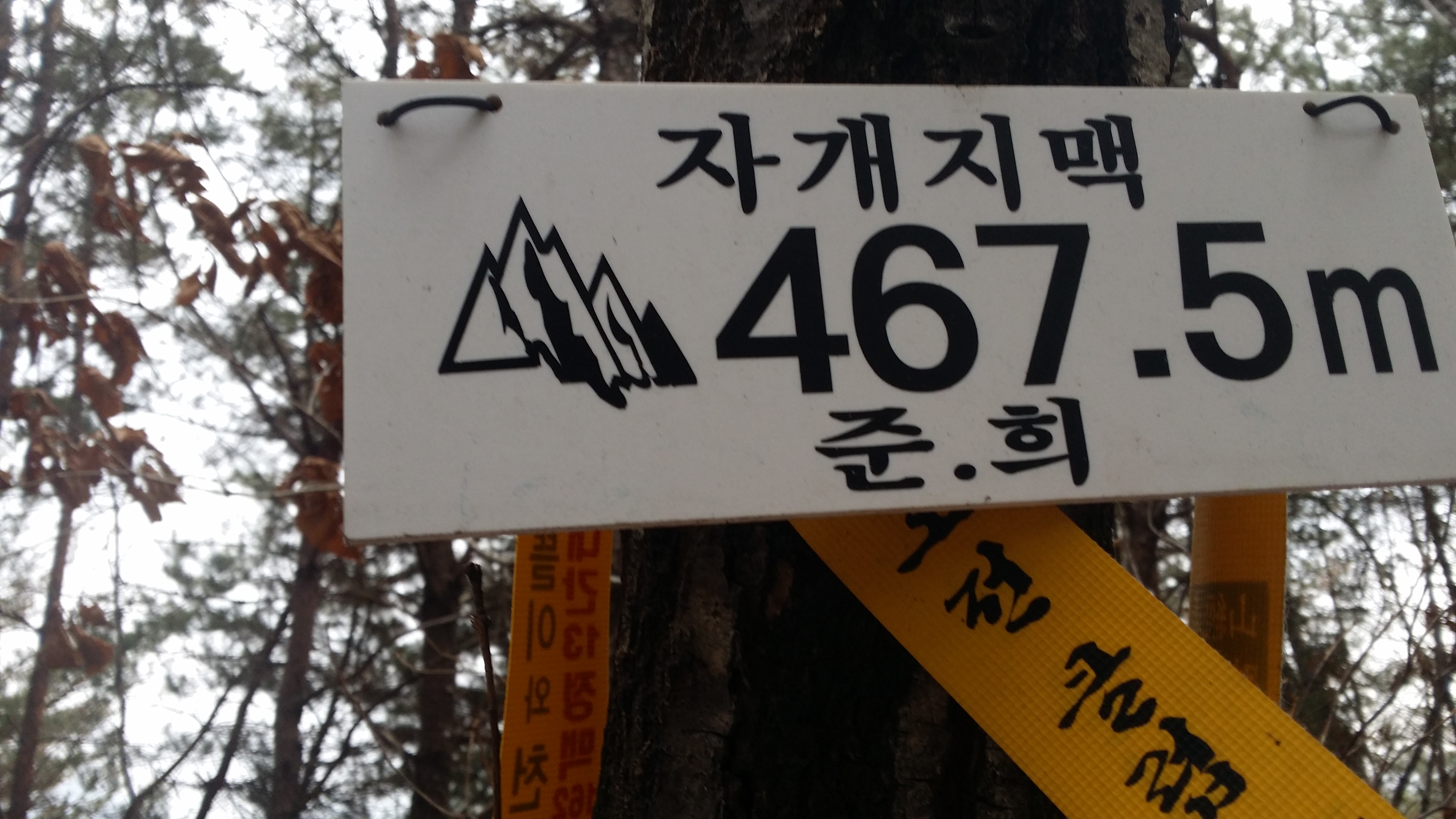 13:13 자개봉을 내려서자 입산금지 안내판이 있다. 특용작물 재배지로 수확철엔 피하는게 상책일것 같다13:22 움막113:27 폐움막잣도 나딩군다13:40 움막2 / 여기까지 통제지역?13:51 467.5봉13:56 넝굴군락 / 여기까진 고속도로 였다면 이제부턴 각오하시라. 겨울엔 진행하는데 하등 지장 없다 14:03 우측 사과밭이 마루금인데 우회하기로 한다14:06 가시나무군락 / 조금 성가시네. 적당히 스크래칭하고14:16 411.9봉14:23 사과밭 중간으로 마루금이지만 가장자리로 이동한다14:25 무넘어 고개14:35 367봉14:44 사문路를 지나 능선에 진입하며 가시나무가 영접한다. 겨울철엔 진행하는데 크게 문제되지 않다14:46 봉우리에 올라서면 넝굴군락이 있는데 이도한 겨울엔 문제되지 않다14:55 전방 통신탑이 마루금인데 비닐하우스에 가로막혀 좌측으로 우회하는데, 마루금을 고집할 필요없이 좌측 도로로 진행하여 영주소방서 부석119지역대로 바로 진행하는게 맞다 15:00 통신탑 / 미련스럽게 마루금을 고집한다 곧 들이닥칠 가시군락이 기다리고 있다는걸 모른채15:07 소로를 따라 내려서면 되는데 제어가 안되는 가시나무가 식재된 비탈을 내려섰다. 여기저기 찔리며 4~5m 비탈을 4분만에 헤쳐 나왔다. 신기하게 스크레칭은 없다. 15:09 영주소방서 부석119지역대15:13 뒤돌아 본다15:17 사과밭 가장자리를 따라 진행한다15:27 396.3봉15:52 370.8봉15:55 가시군락 / 겨울엔 진행하는데 문제 없음15:59 가시군락 / 이또한 겨울엔 진행하는데 문제 없음16:07 백두대간 소백산 마루금16:07 지나온 자개지맥 마루금