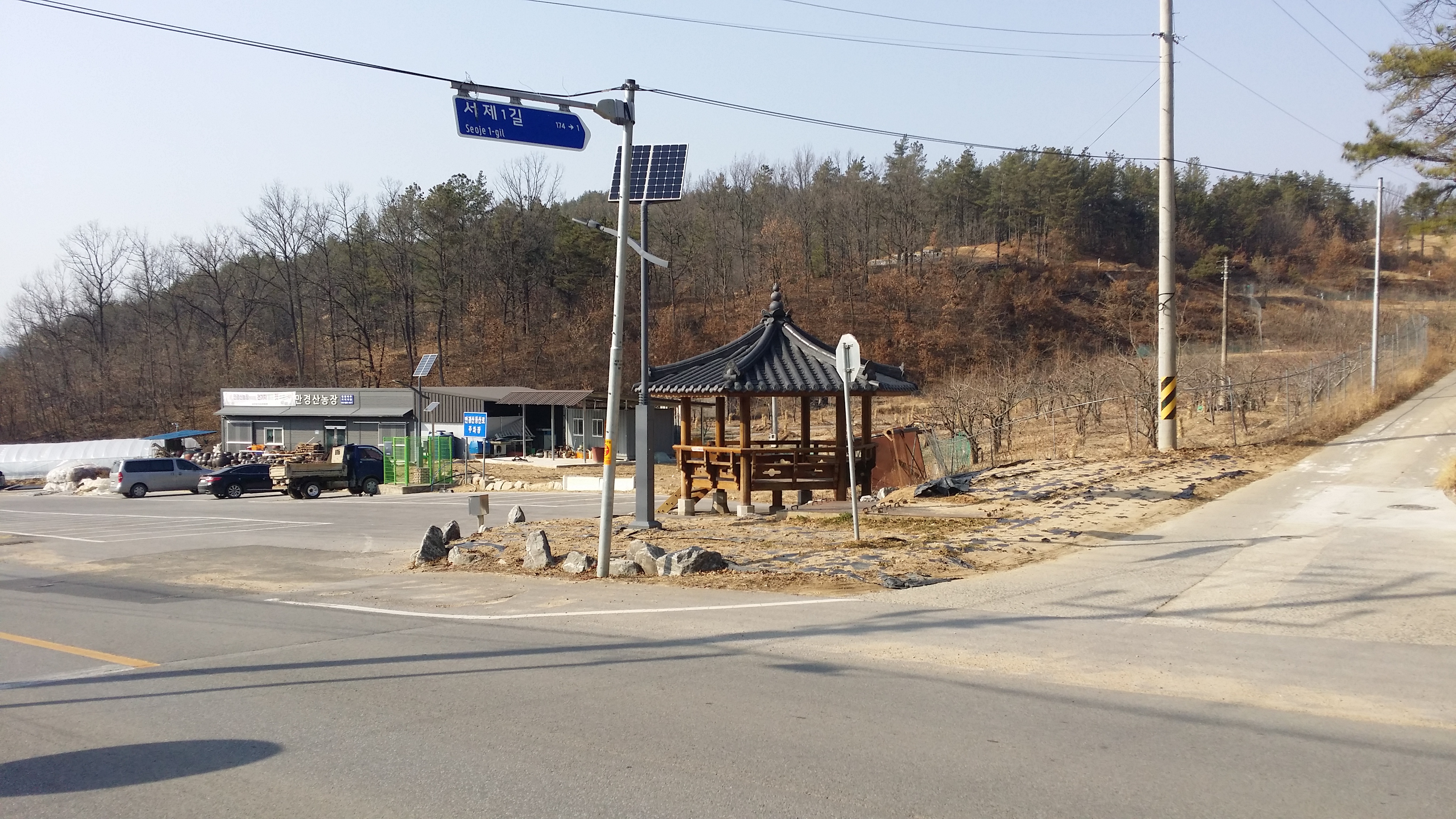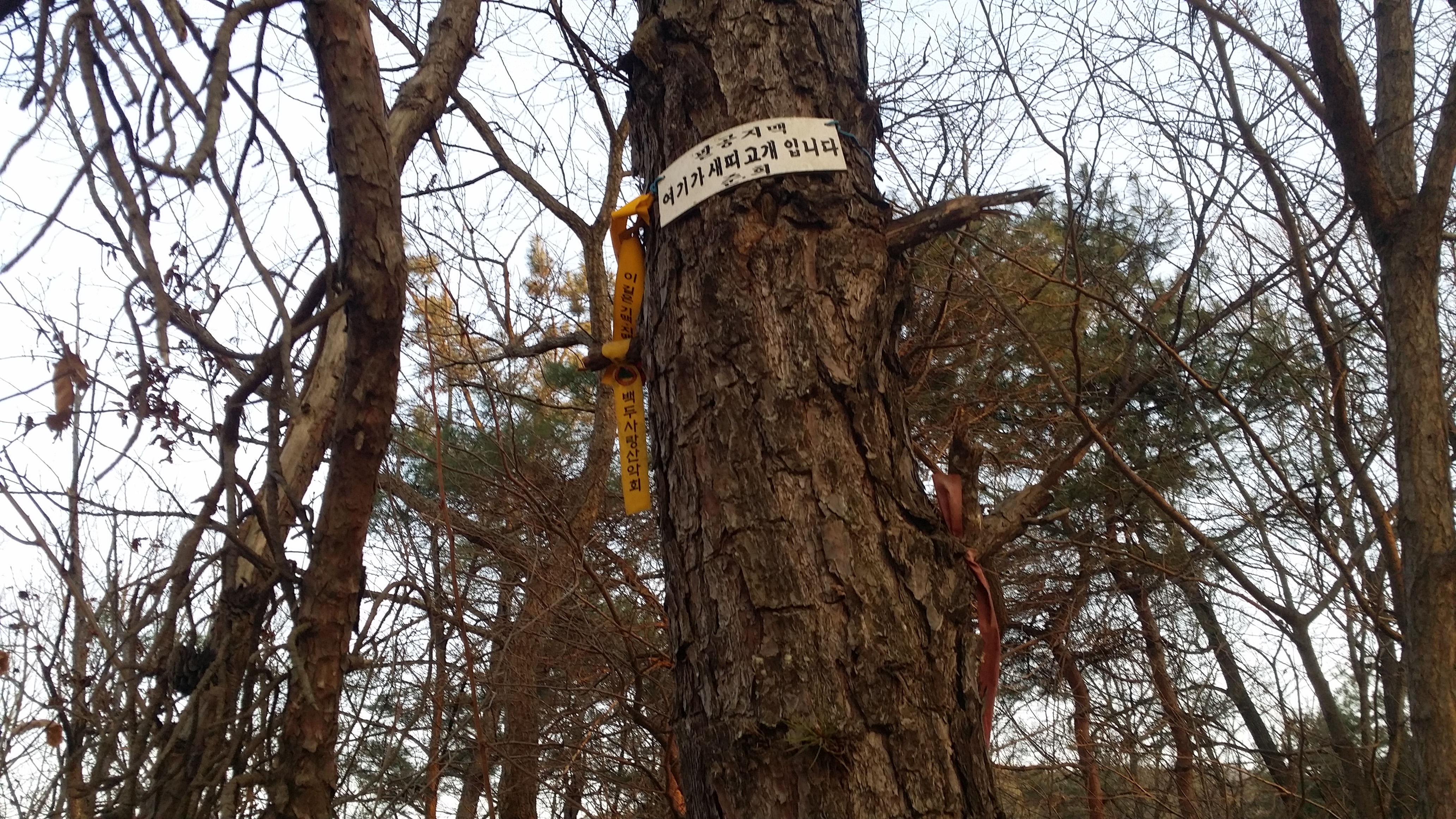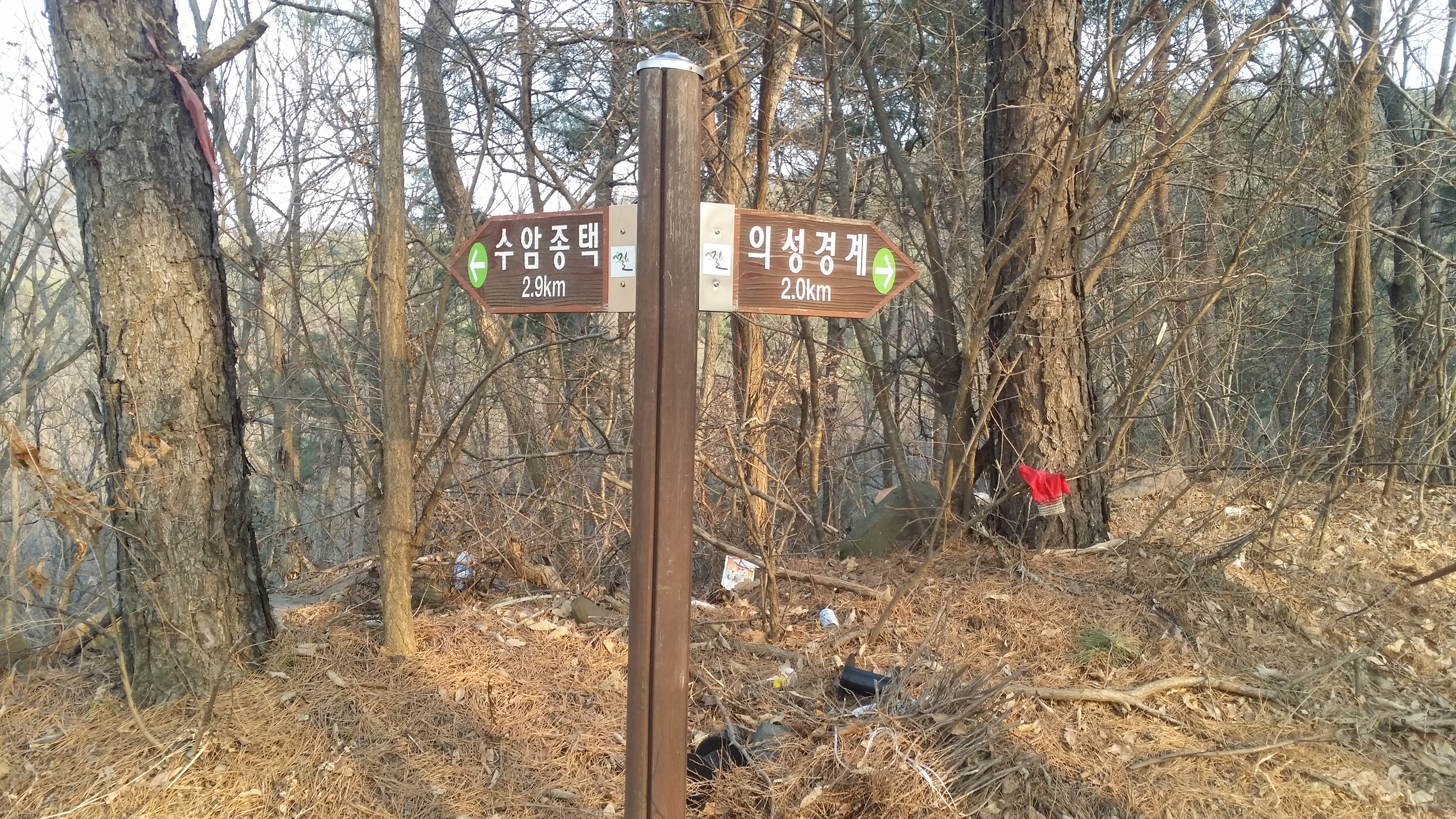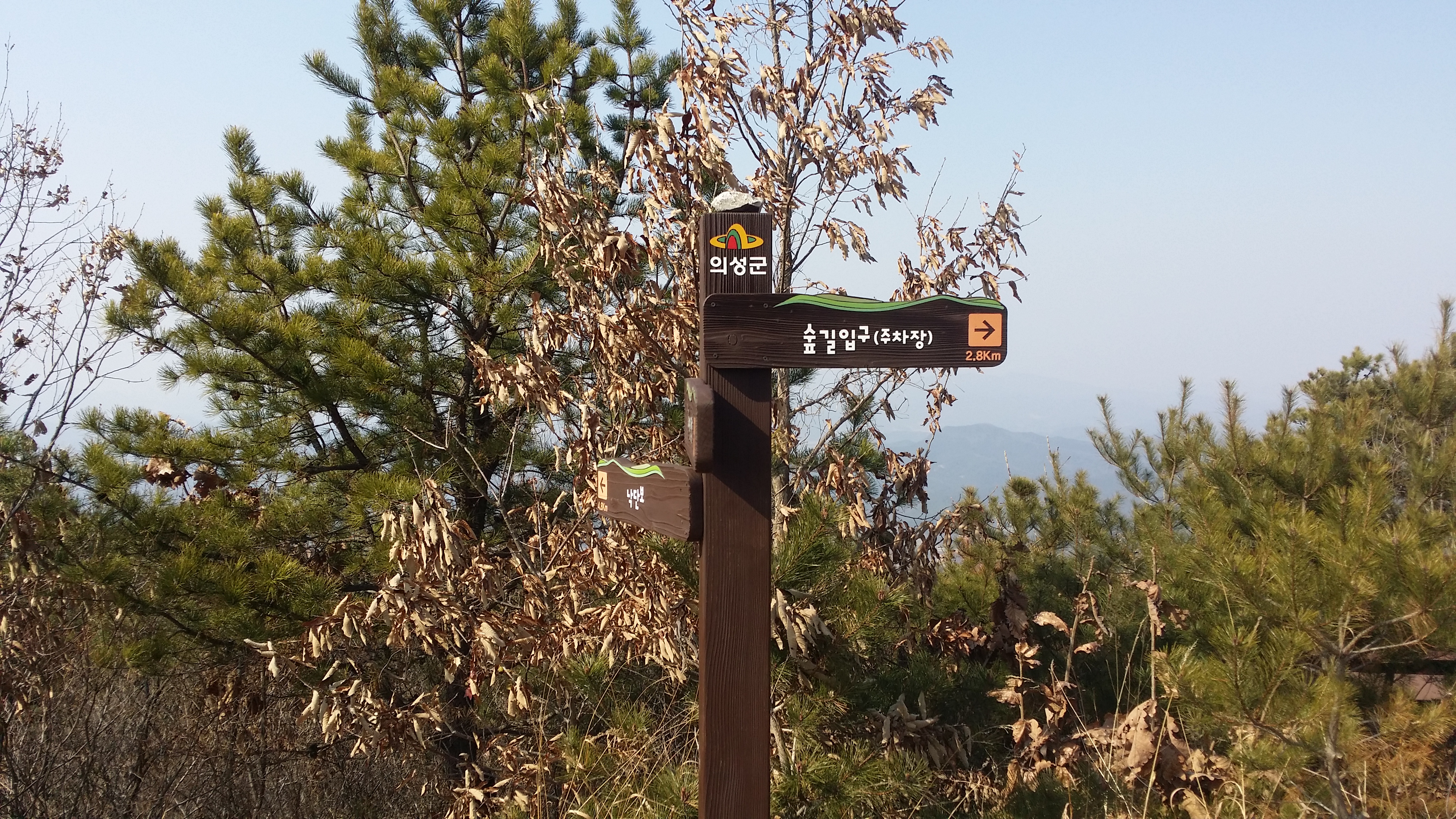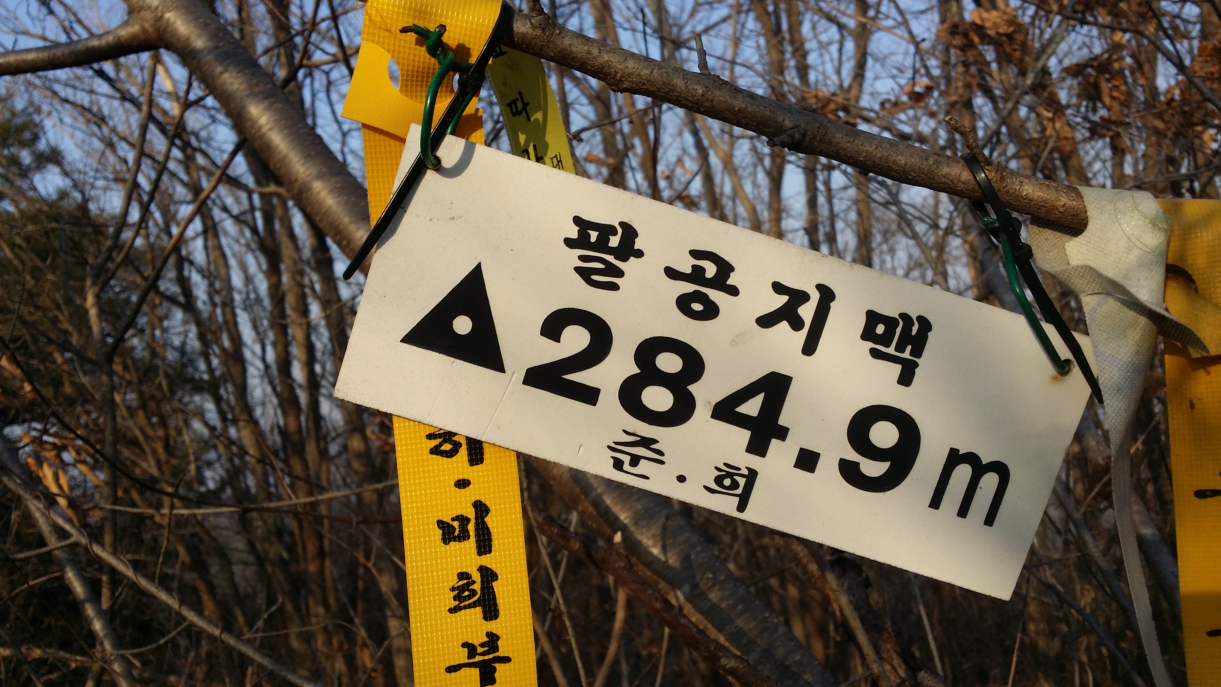 16:43 283.9봉(△) / 새띠고개 만나기전 좌측 합수부로 떨어지는 급경사길을 내러선 산꾼들이 있다. 난 무릎이 부실하여 우회하기로 한다17:06 새띠고개 / 17시25분 우물리에서 낙동으로 나가는 버스가 있는데17:11 고택