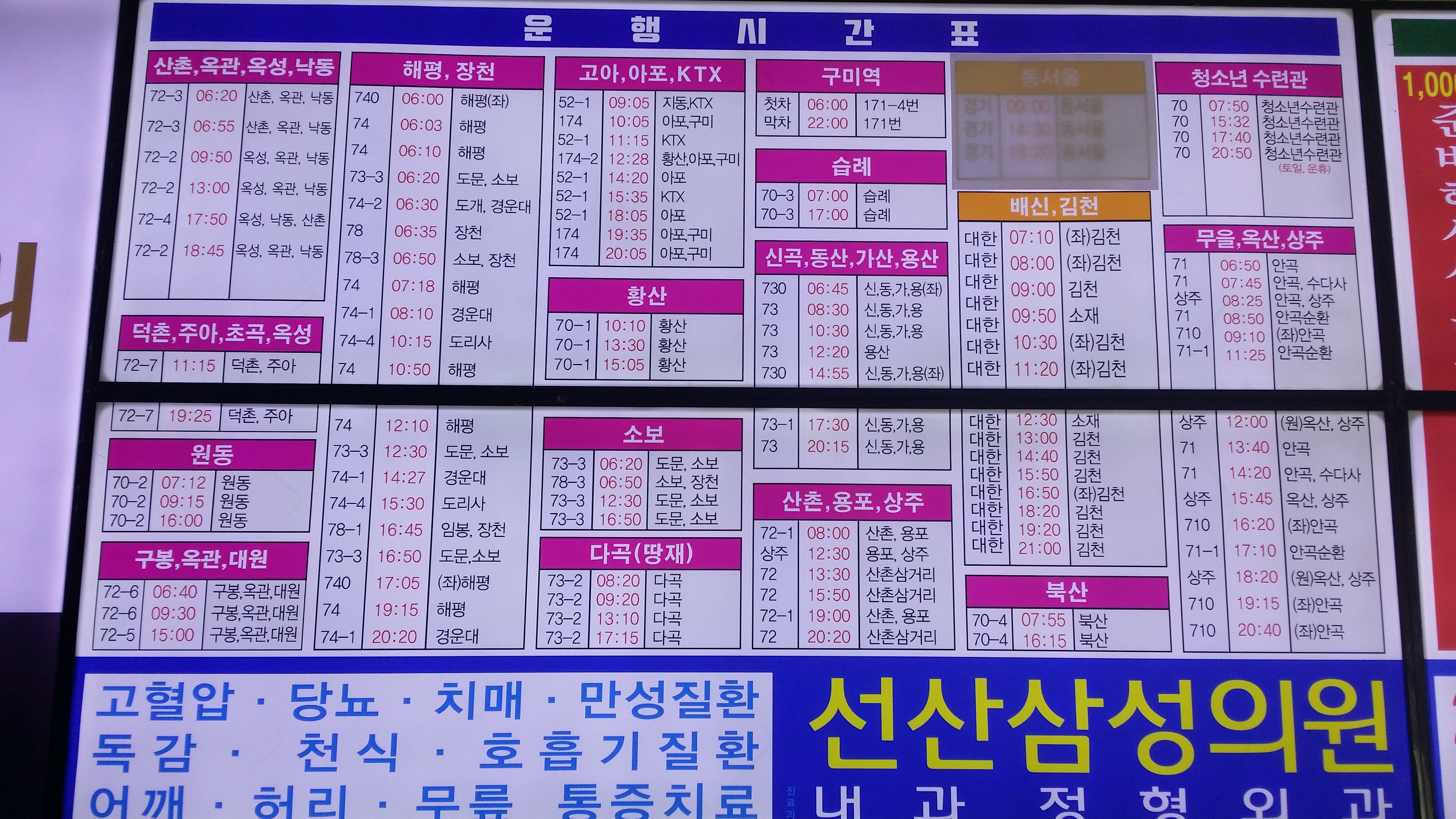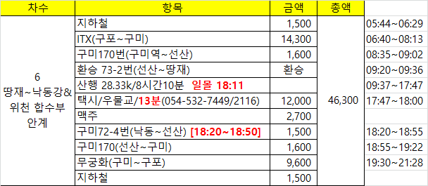 낙동에서 아침에 땅재 타고갔던 기사님을 만났다. 그분도 산을 좋아한다며 이런저런 이야기 나누다 예상보다 5분 늦게 선산에 도착했다. 다행히 18시55분 구미로 나가는 버스를 세워 20시54분 예매한 차편을 앞당겨 집으로 귀가한다