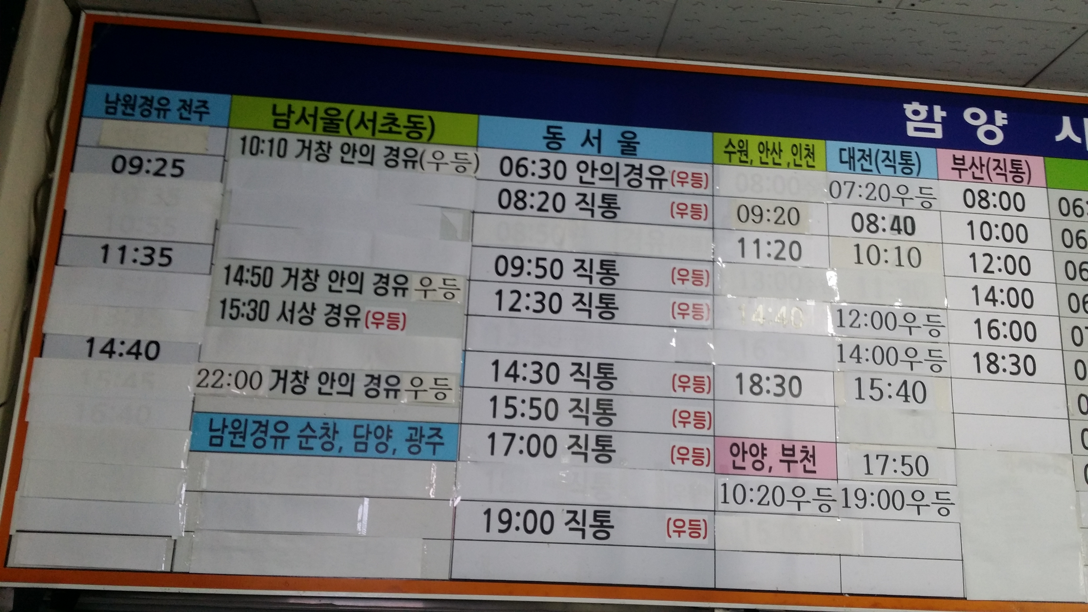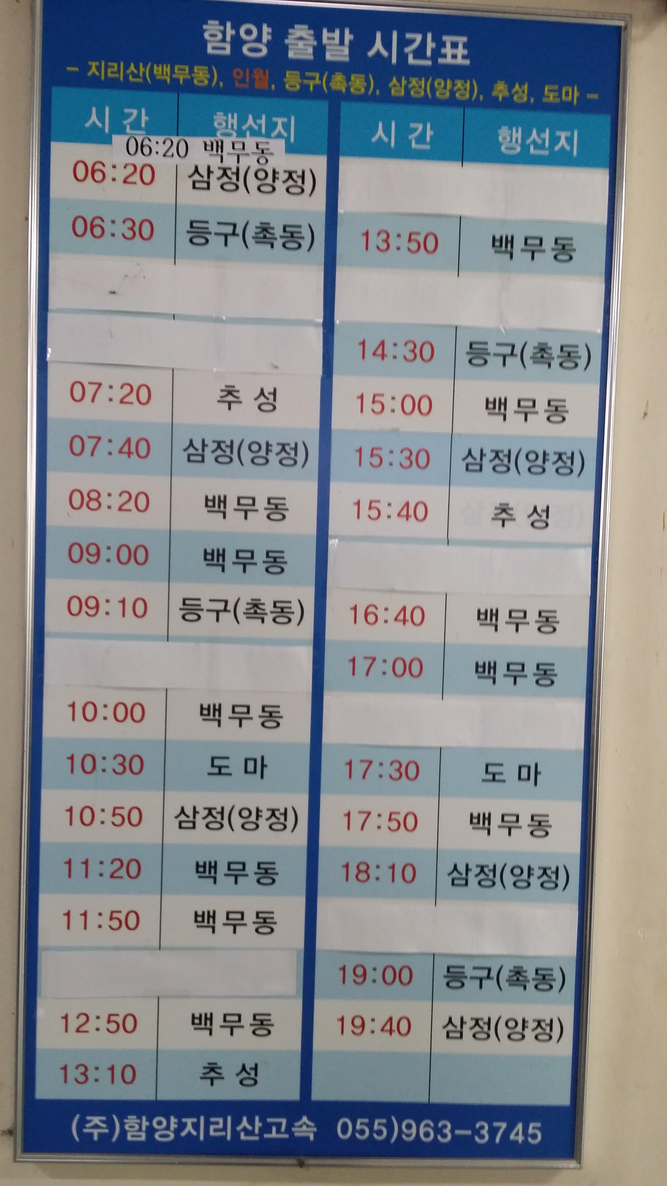 서부 시외버스터미널 가는길에 휴대폰을 만지작 거렸는데 밧데리 잔류량이 급격하게 떨어진다. 뭐지. 밥을 먹으며 밧데리를 교체한다는게, 오래된 밧데리를 다시 끼운것 같다. 예비 밧데리 1개로 하루를 버텨야 하니 산행중 음악 감상은 참아야겠네. 난 8년된 구형폰을 사용하고 있다. 폰팔이 시절 아이들에게 최신형으로 교체해준 마지막폰이다. 아이폰 매니아 였는데, 이놈은 추위에 너무 약하다. 그래서 산행중 보조밧데리를 사용하다보니 나무가지에 케이블 단락을 수없이 경험하다 인내심의 한계를 느끼고 버려진 안드로이폰으로 갈아타면서 보조밧데리를 4개 구입했다. 밧데리 일체형인 신형폰들은 나에겐 무용지물이다. 보조밧데리 4개면 1박2일 산행에도 만사 OK부산서부 시외버스터미널에서 함양 직통 7시차를 탄다8시45분함양에 도착하여 9시에 백무동가는 버스에 오른다.9시25분 인월 지리산공용터미널에 도착하여 구상가는 버스를 타기위해 파출소사거리(아영벙면) 정류소로 이동한다