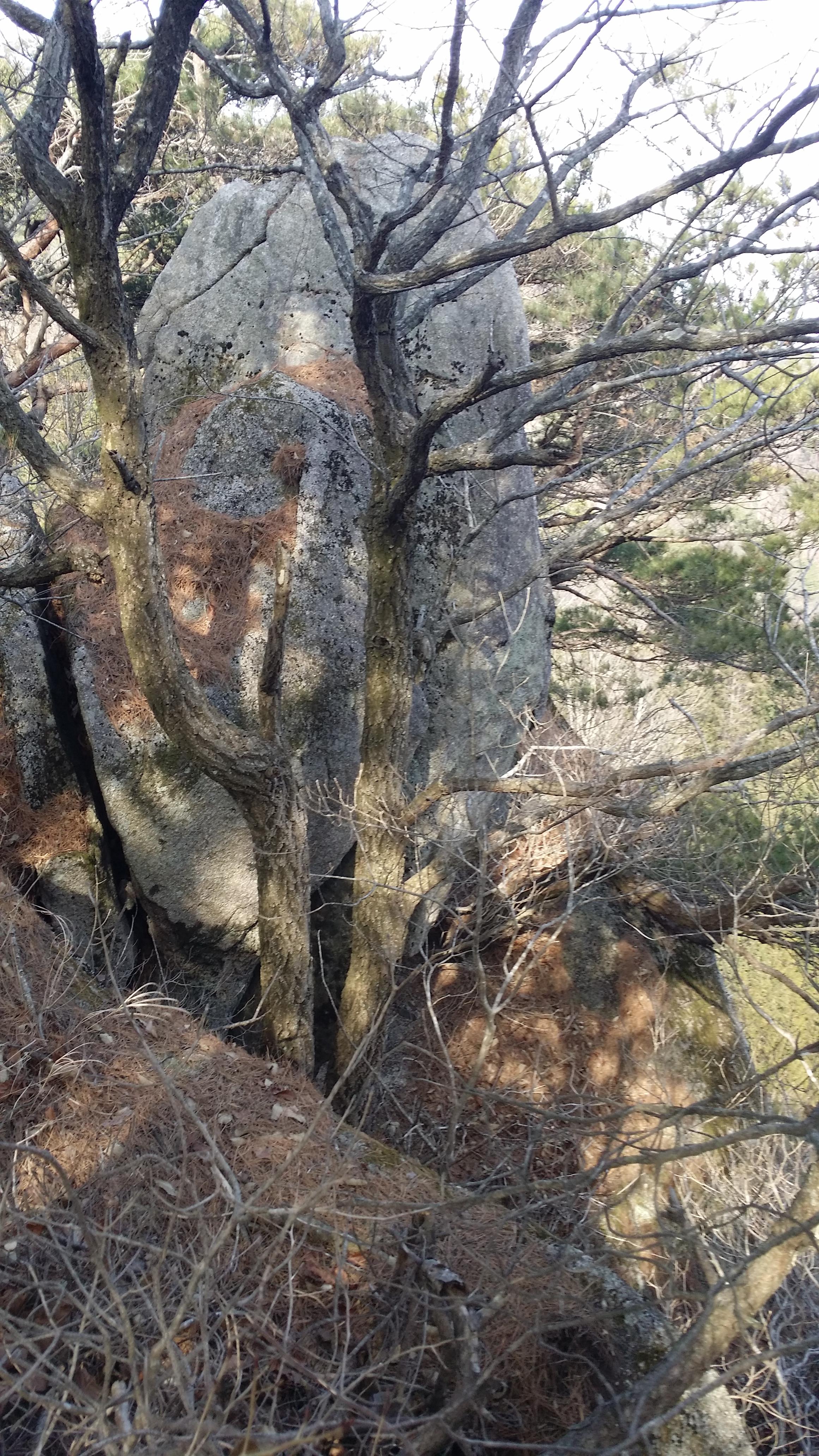 오늘 산행 끝자락에 오봉산이 있다. 함양 오봉산하면 떠오르는 가슴 조려오는 추억이 있다. 10년12월12일 당시엔 맥에 대한 관심은 없어 안내산악회를 따라 다녔는데, 어떤 연유로 여기를 택했는지는 모르겠다. 가재골농원을 들머리로 태조릿지 우회 암릉을 올라서는데, 간이 콩알만해 혼자서는 못올라서겠네. 여기서 끝났는줄 알았는데, 오봉산 정상을 찍고 옥녀봉을 향하는데, 커다란 암반에서 정상적인 등로는 좌측으로 진행하는데, 잘못 들어가 우측으로 진행했네. 헐 잠시후 우측은 천길 낭떠러지인데 우째우째 능선을 건너 소나무를 잡고 어렵게 내려서니 10m 길이의 칼날능선이 기다리고 있네. 우측은 직각 낭떠러지고 좌측은 2~3m 높이의 칼날능선. 어렵게 여기까지 왔지만 되돌아서야 겠다고 돌아서는데, 뒤따르던분이 칼등에 납작 엎드려 포복하면 된다고 앞장 서라네. 아 난감하네. 그래서 낮은 포복자세로 전진이 아닌 후진하며 내려섰네. 그렇게 가슴 쪼려 내려섰는데, 역산행하시는 두분이 나타나더니 거리낌 없이 칼날능선을 진행하네. 뭐야. 대단한건지. 간이 배밖에 튀어 나온건지. 쫄보가 그때 처음으로 간큰짓 했네. 여유가 있으면 그때 그 갈림길 보고와야지