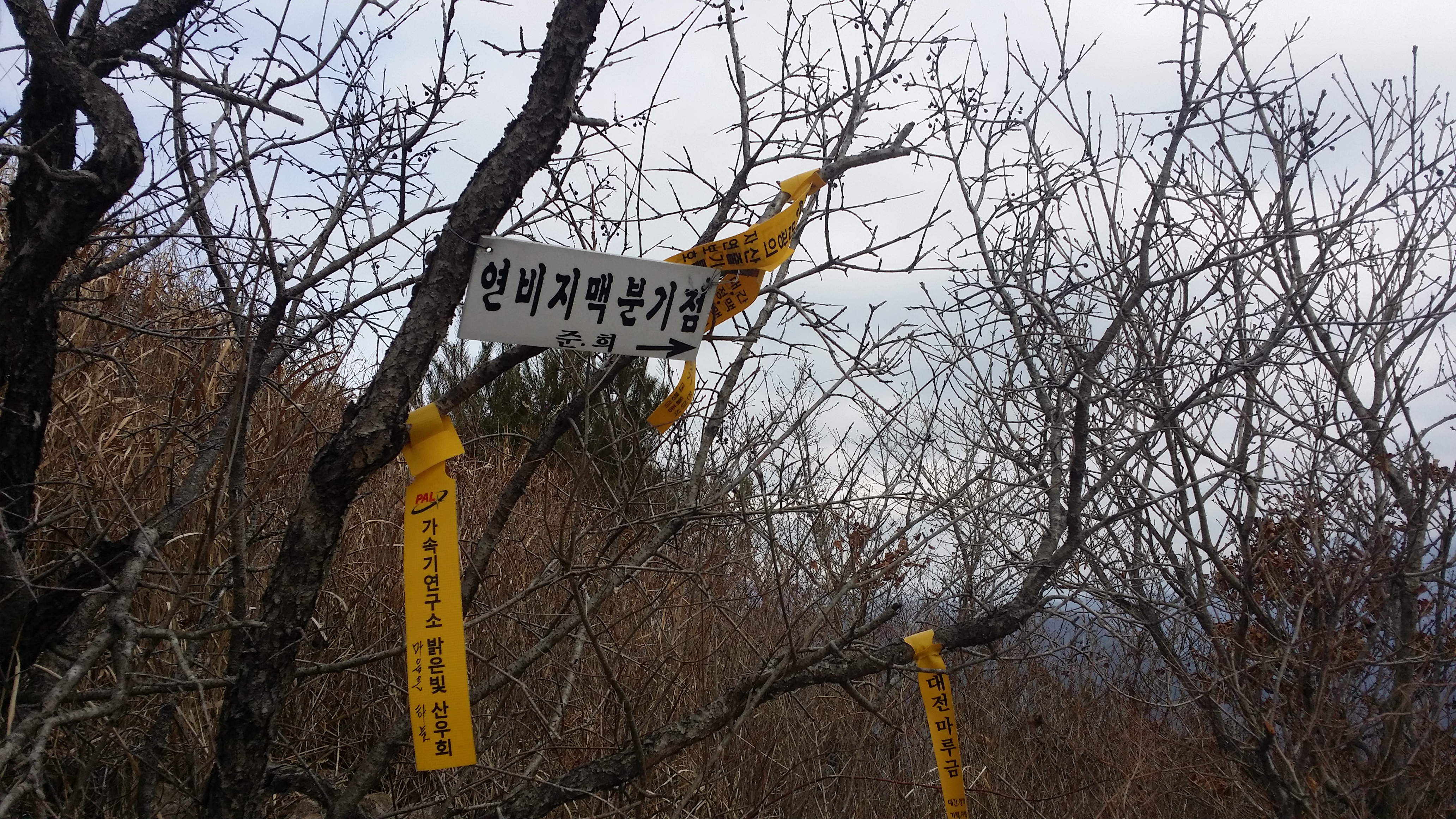 바람이 강하게 불어 체감 온도는 더 떨어졌네10:11~10:15 부동마을 회관에 내려 산행준비후 출발한다. 바나나 1개로 배를 채운다.10:47 부동마을을 내려다 본다11:04 백두대간 마루금에 올라서 봉화산을 바라보고장수면11:07 연비지맥 분기점11:15 806.1봉11:59 715.8봉12:09 옥잠봉(705.5m)12:20 벌목지