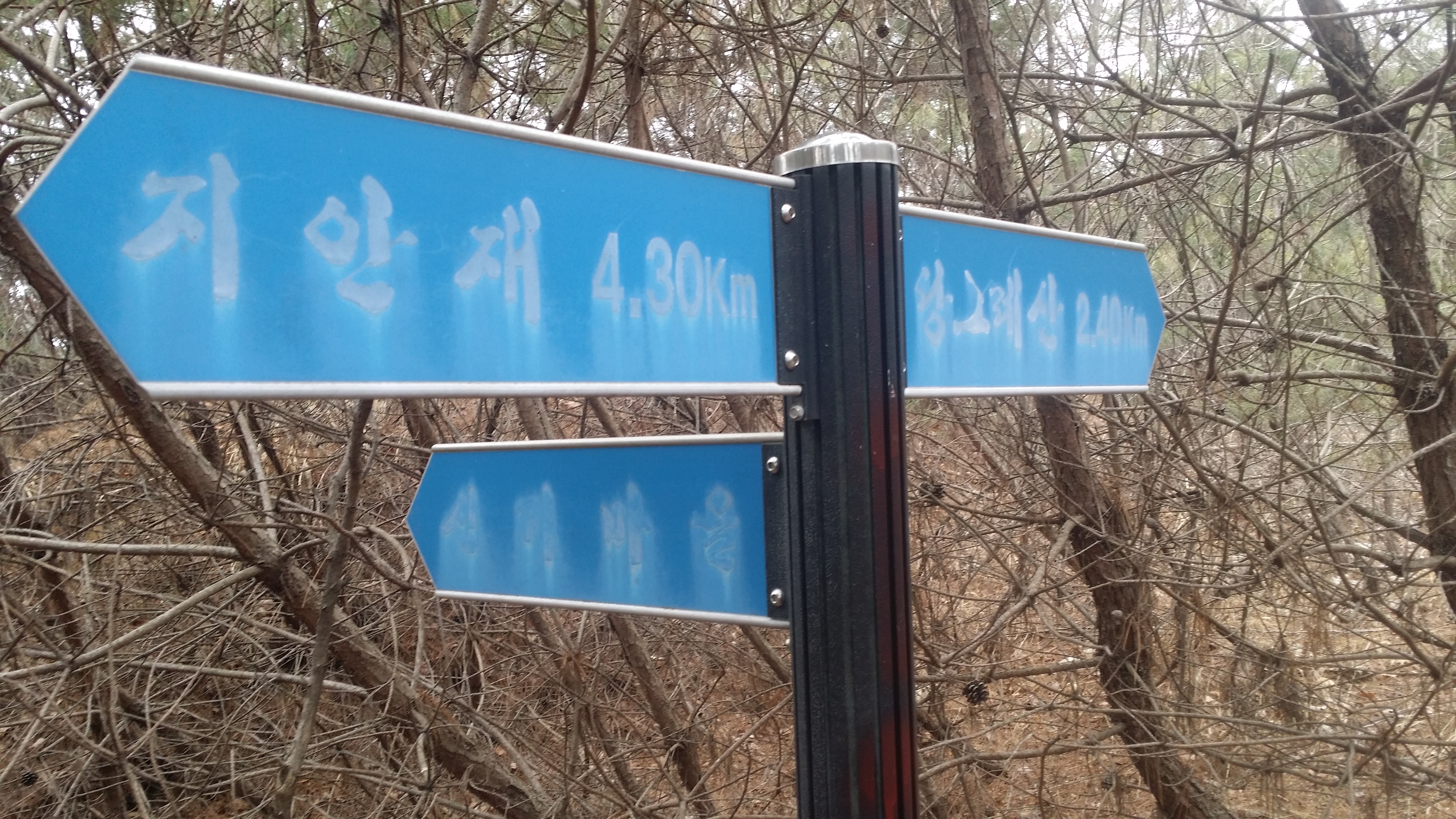 13:01~13:38 지안재13:50 438.1봉 / 지안재를 내려서며 16시 부산행 직통버스를 탈수 있겠다는 계산이 나왔는데, 이젠 팥두재에 15시54분경 지나는 버스를 타고 재수 좋으면 16시 직통 버스를 타겠다는 생각과 왜 인간은 왜 태어나 죽어야 하는지 하는 감정이 교차하며 울컥 눈물이 쏟아진다.13:55 대군동/사구동 갈림길14:12 555.4봉14:16 벌목지