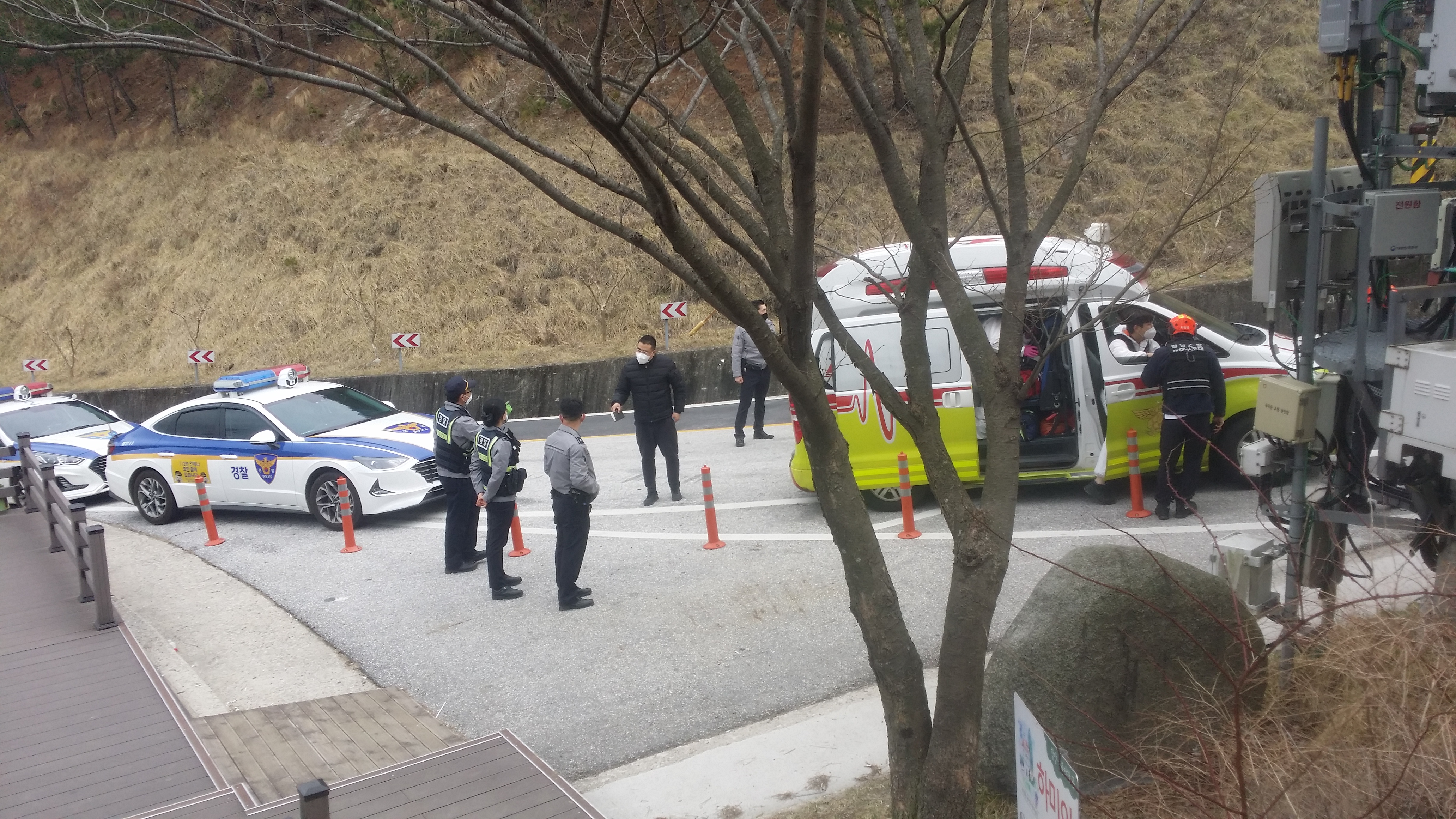 지안재 부근이다 맥길은 전망데크로 내려서야 하는데 등로는 우회한다. 아무런 망설임없이 오리지널 멕길로 내려선다. 처음엔 등로가 없지만 조금 내려서니 희미하게 누군가 다닌 흔적들이 보인다. 그렇게 20m를 내려섰나 젊은 친구가 등을 돌리고 소변을 보는것 같다. 나도 꼴통이지만 대단하다 생각하고 방해 안되게 조용히 지나칠려는데 바닥엔 양주병과 베낭이 극단적 선택을 했다. 얼굴을 보니 오래지 않지만 이미 늦은것 같다. 일단 지안재로 내려서 119에 신고했다. 사실 오늘 이곳과 영암지맥 마무리 구간을 두고 고민 했었는데, 내가 이 친구를 가족품으로 보내줘야 하는 운명이었나보다. 지척에 지안재가 있지만 내같은 꼴통 아니면 아무도 오지 않는 이길에....