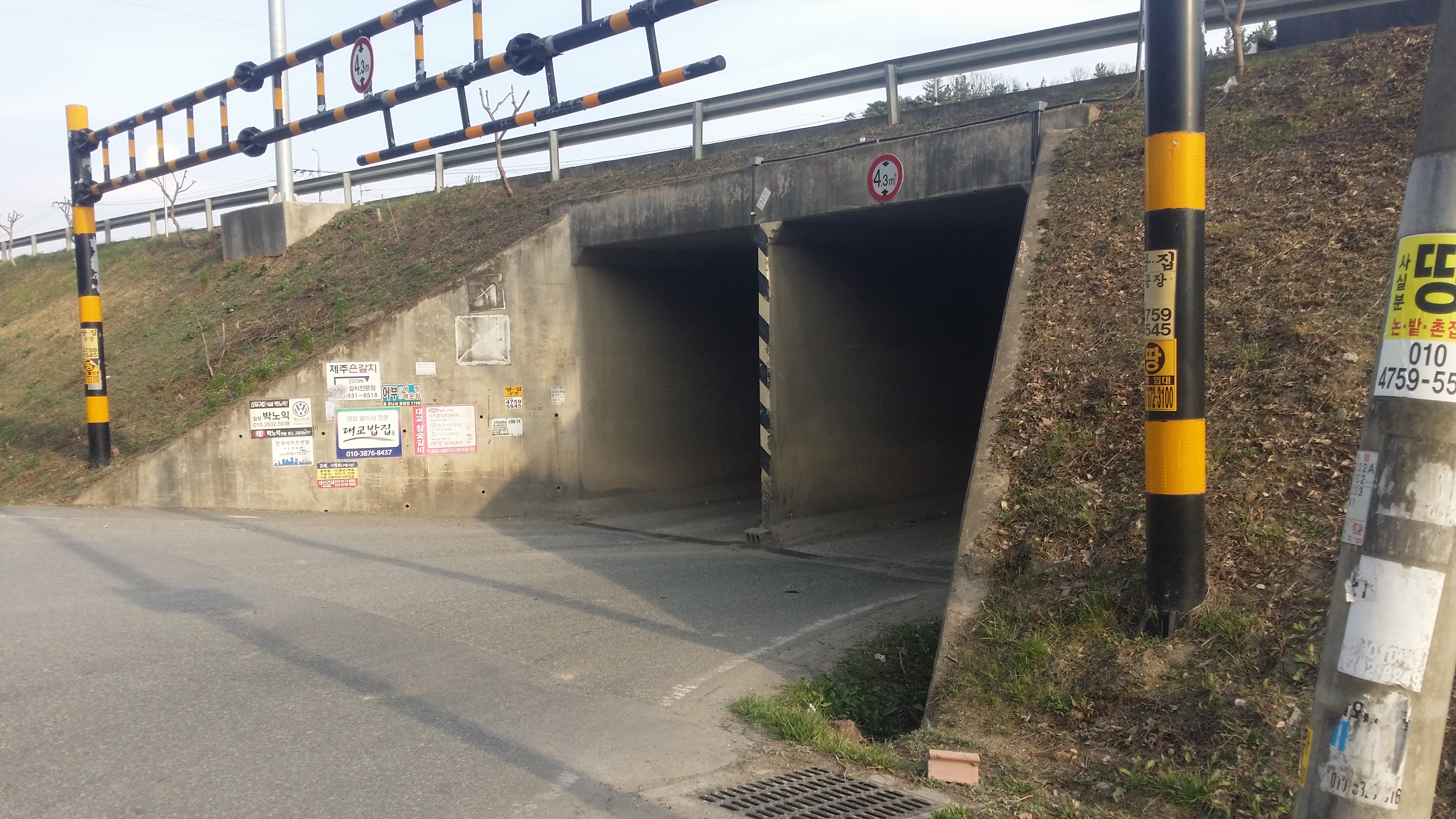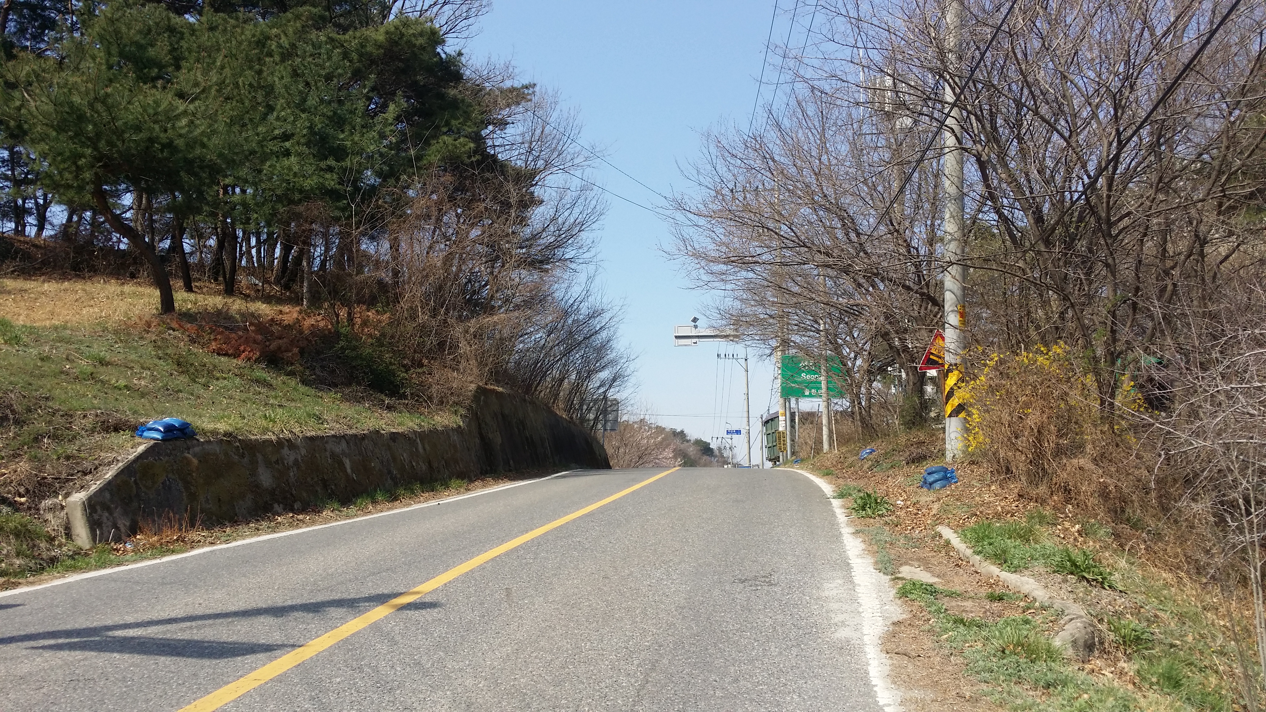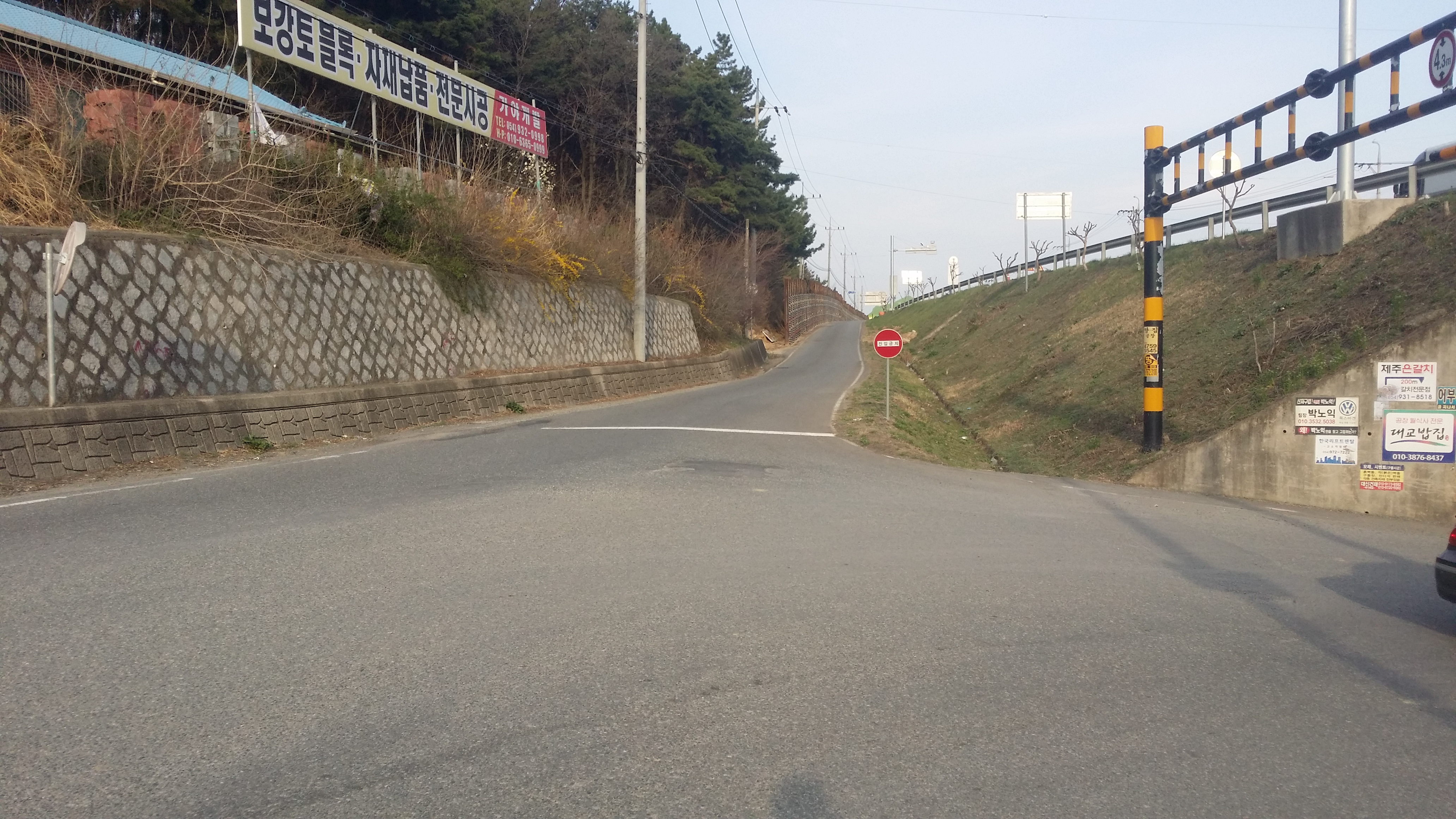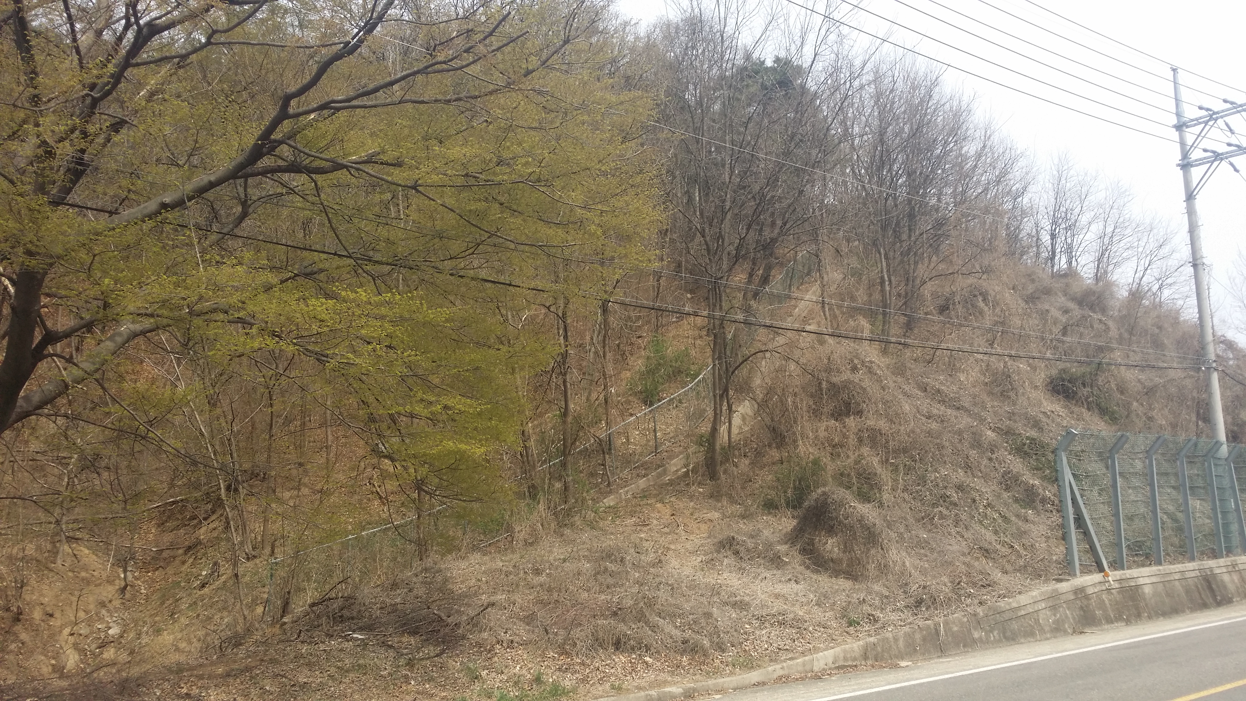 12:58 다시 개구멍을 통과한다12:59 33번 국도를 통과하기 위해 우측으로 이동하는데, 종전 철조망을 따라 진행하면 이곳으로 내려선다13:02~13:04 33번 국도를 가로지를려 기회를 보는데, 차량의 행렬이 끊기질 않는다. 방도가 없으면 중앙분리대에 매미붙을건데 우측으로 통로가 있어