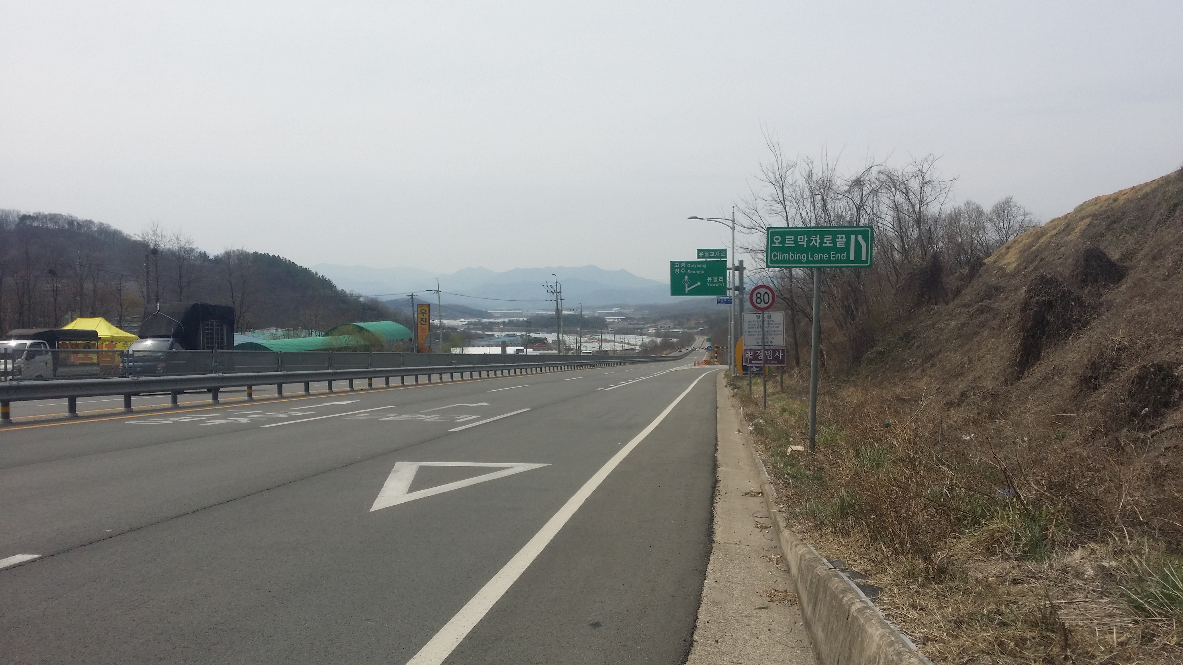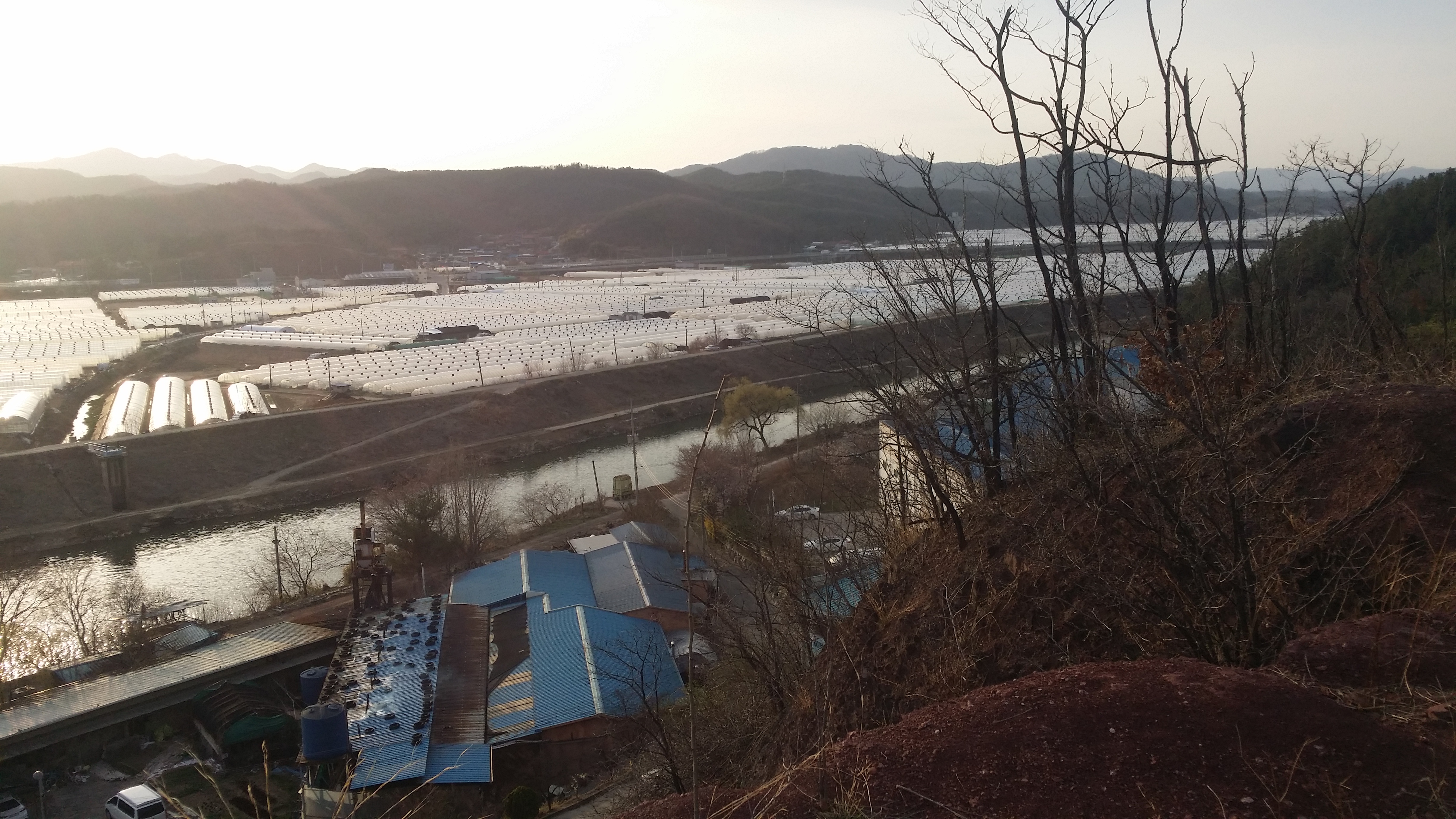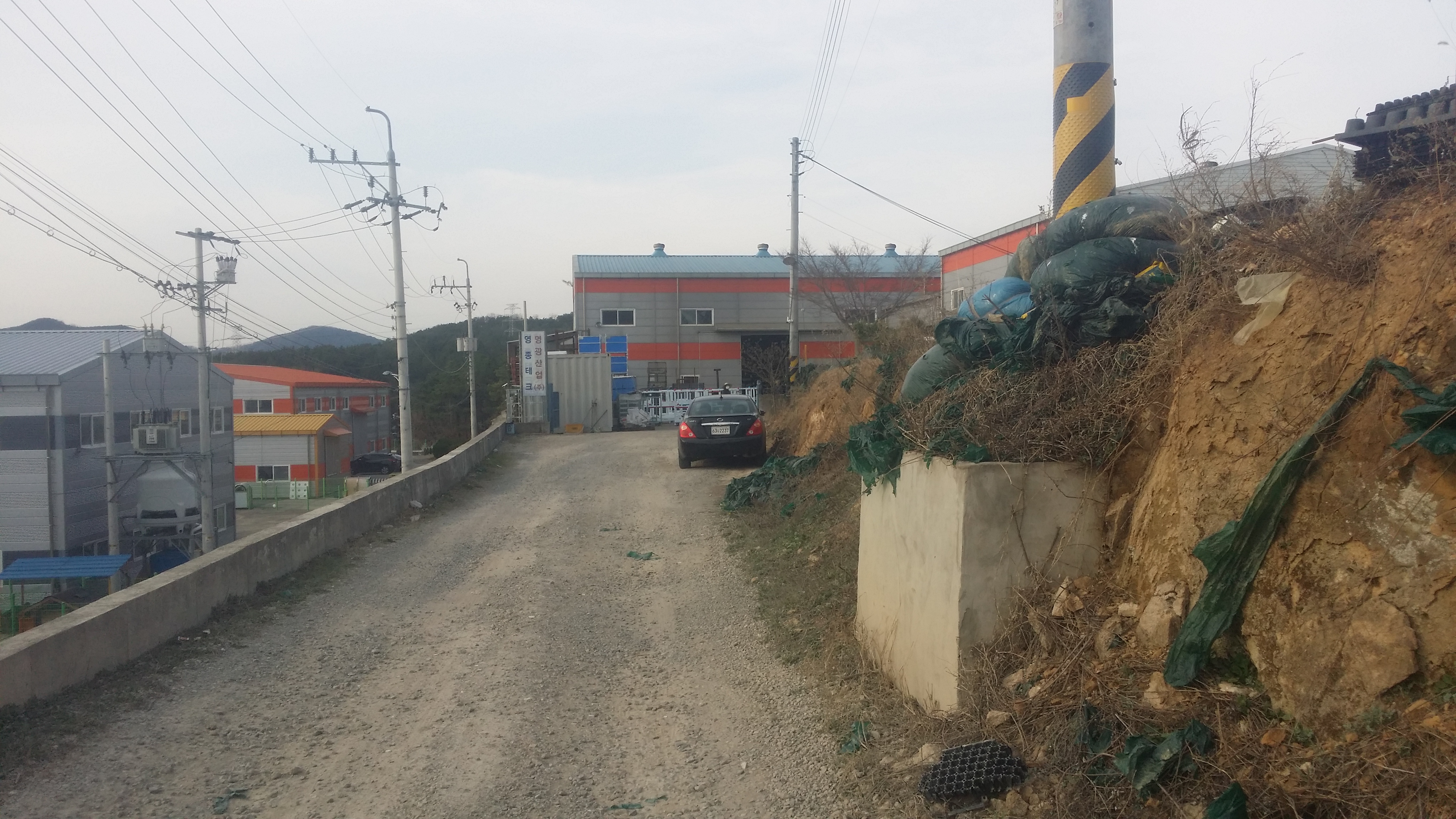 좌우 전방을 뒤덮은 하우스엔 참외가?16:11 125.8봉16:25 전방 텃밭으로 진행해야 하는데 쯥쯥 포기하고 도로를 따라 내려서다 좌측으로 공장부지 진입로가 있다. 73.5봉 밟기는 그놈의 시간때문에 왔다갔다 하다 포기한다16:35 명광산업 공장을 나오며16:48 공장부지를 지난다16:51 마루금은 에스와이티컴퍼니를 들어가 산으로 들어서야 하는데, 우회하기로 하는데 100m 내려서니 등로가 있다. 애라 모르겠다. 위약금 물고 KTX 타고 내려가자16:57 74.1봉에서 바라본 성주대교