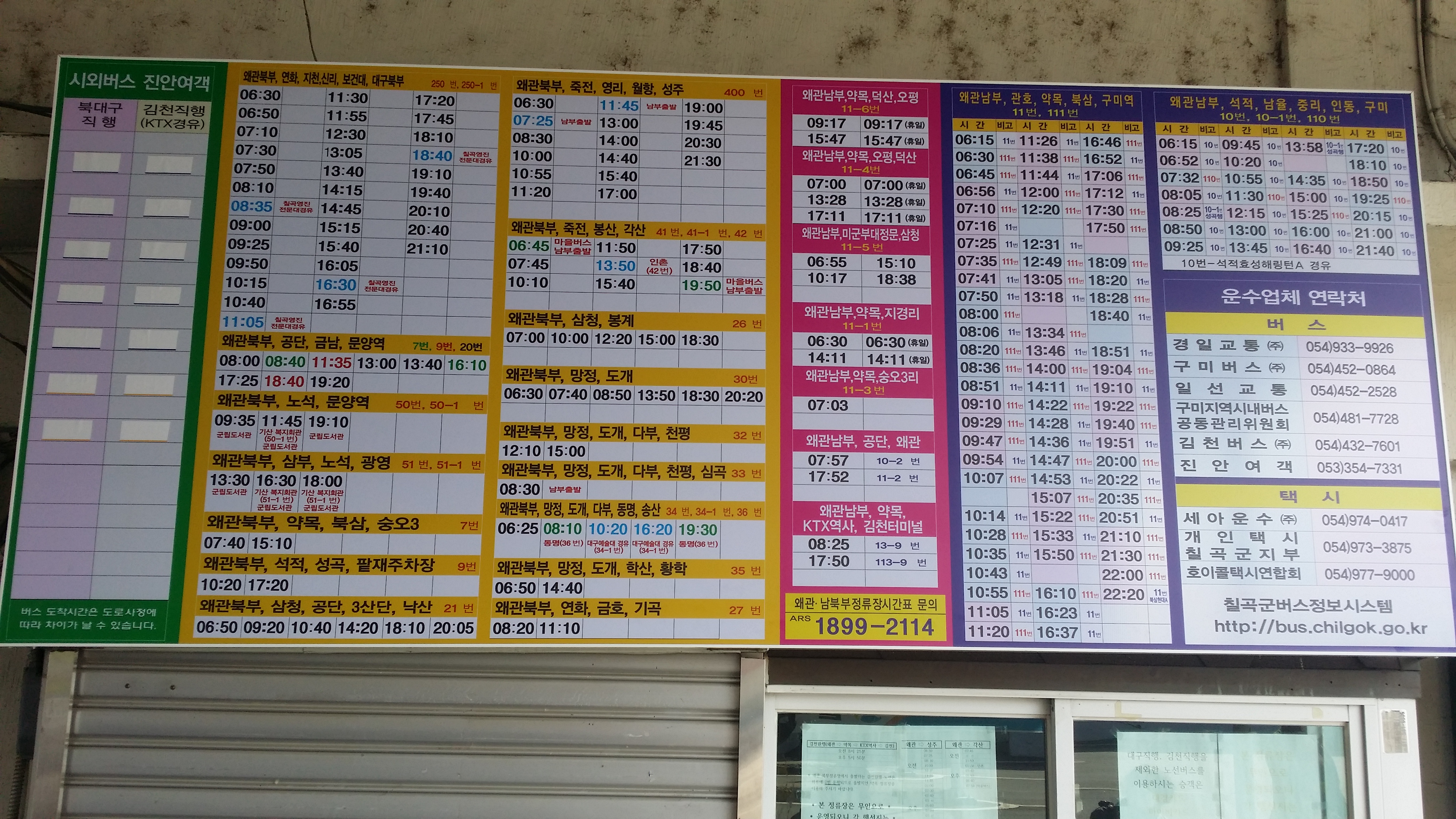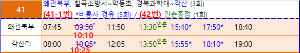 09시37분 왜관역에 내려 9시46분 왜관북부정류장에 도착했다 장날이라 사람들이 북적거린다가이 새끼들 9시50분에 각산가는 버스가 있다고 생각 했는데, 10시10분으로 변경되었네. 기차표를 예매한 상황이라 1분1초가 아까운데. 20년1월1일 개편 했다며 19년9월1일 자료는 뭣땜시 올려 놓았는지.