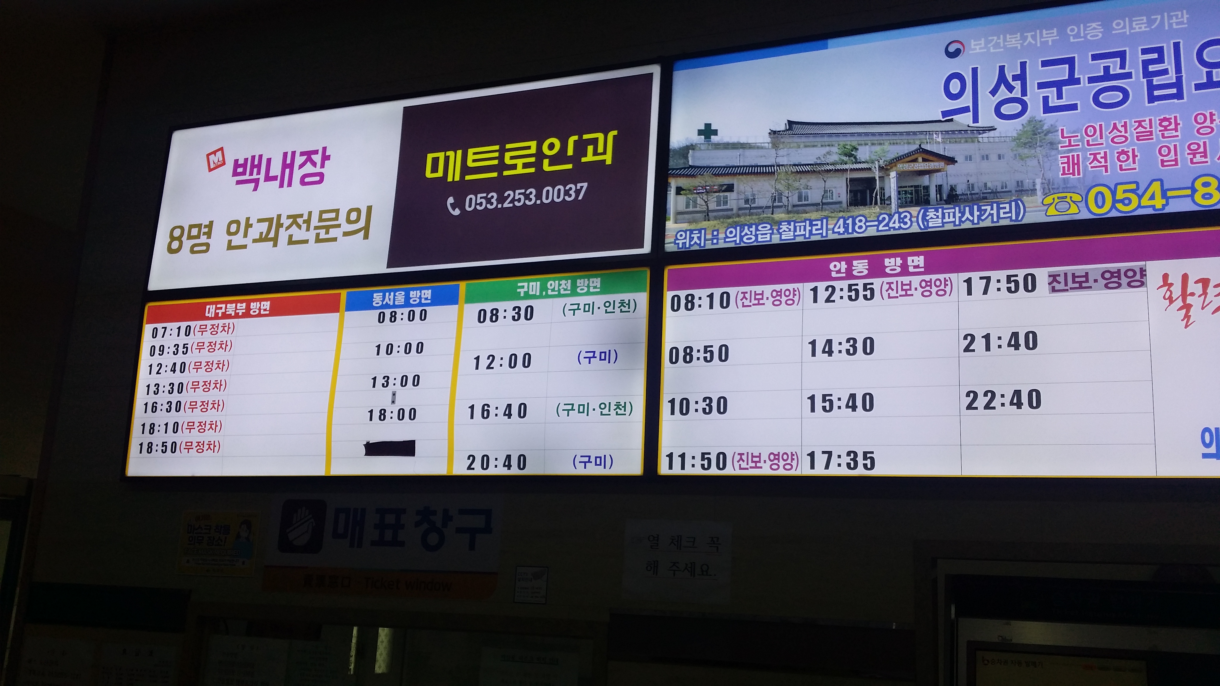 예정보다 5분 연착하여 의성에 도착했지만 버스 시간이 널널해 문제될게 없다의성 시외버스터미널 시간표11시50분 화목행 140번대 버스를 탄다