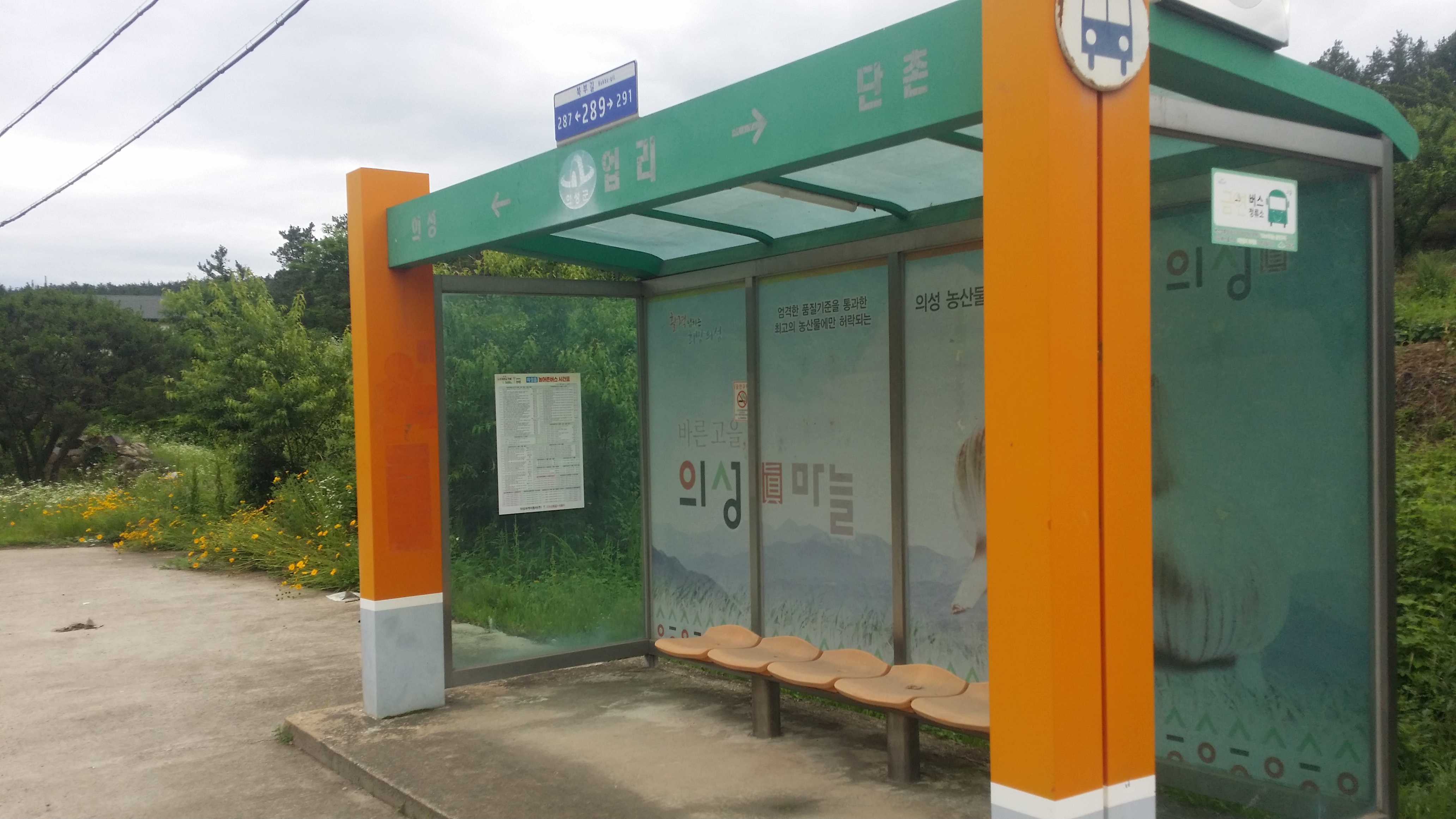 17:04 업리 버스정류소 / 17시45분경 버스가 오는데, 17시50분 의성에 도착하여 17시53분 부전행 열차를 탈수 있을런지. 그래서 의성까지 걷기로 한다. 17:41 의성역연착할줄 알았으면 버스타고와도 되는데 위험한 도로 걷는다고 십년감수했네